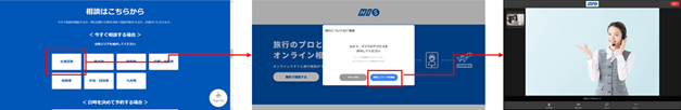 HISがこれまで提供していた「ビデオチャット接客」では必須だった相談前の必要事項の入力を省略し、出発地の選択をするだけで即時相談を始めることができます。お客様をお待たせせずにより簡単に相談受付を行えることから、フォーム入力におけるユーザー離脱を防ぎ、インターネット環境に不慣れな方でも安心して相談いただける環境を提供いたします。