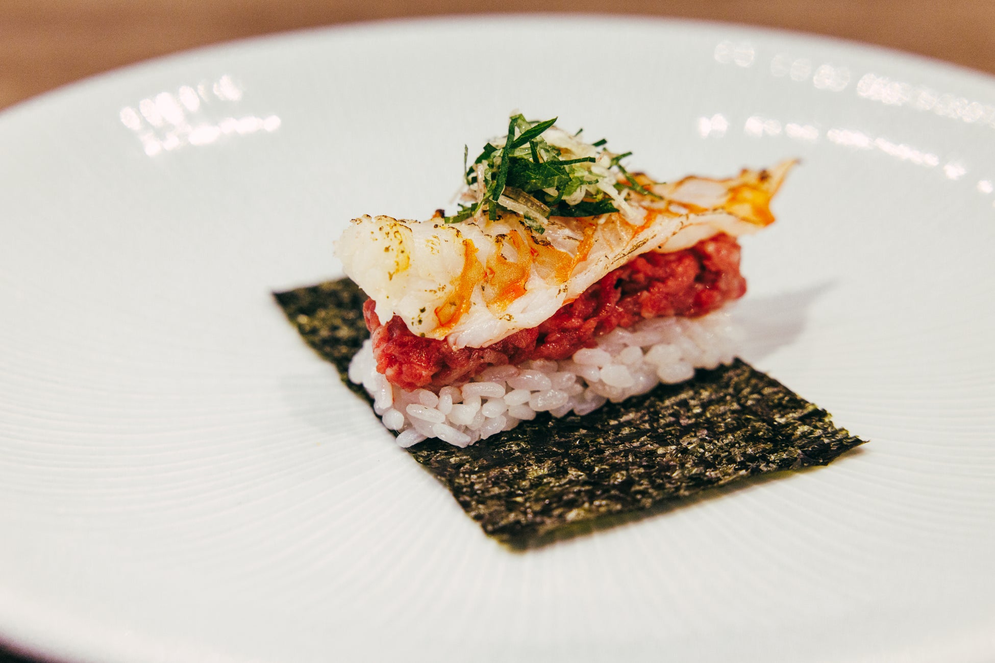 和牛と車海老の手巻き 1貫 1,200円 【焼肉うしごろ】