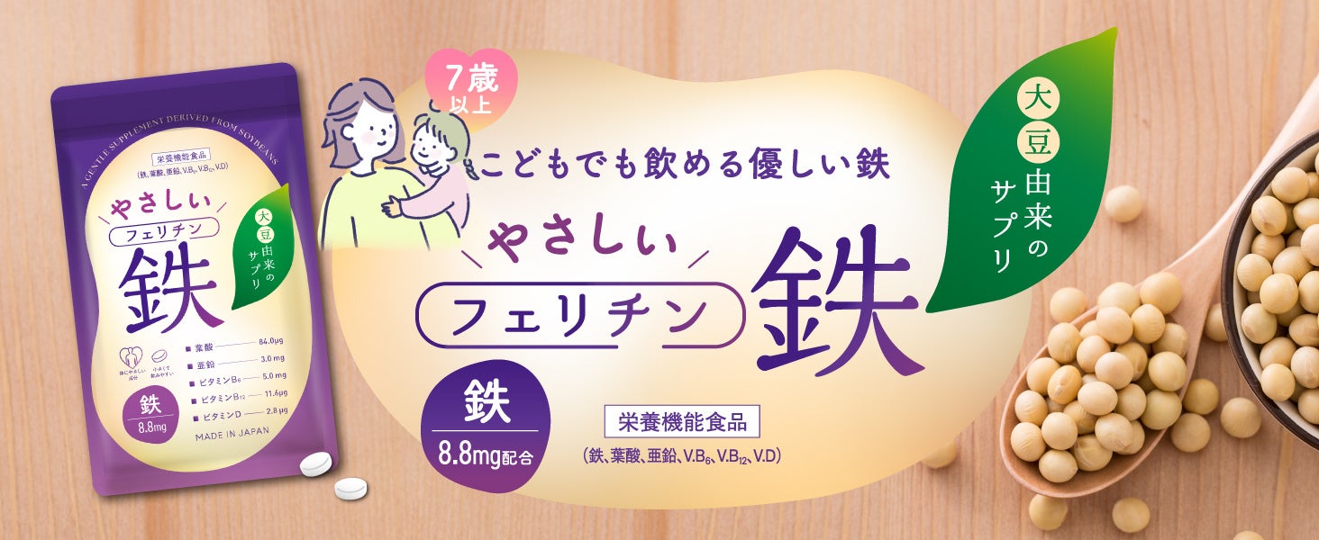 【Amazon・楽天で発売】胃にやさしく、こどもでも安心!大豆由来のフェリチン鉄サプリが新登場