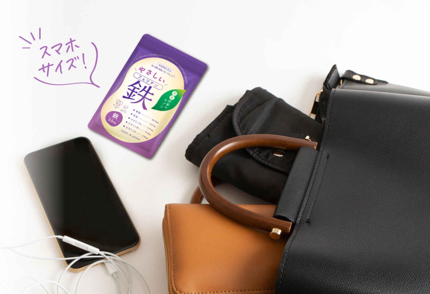 「フェリチン鉄」は毎日続けて欲しいという想いから、カバンの中に入れてもかさばらないスマホサイズにしました。