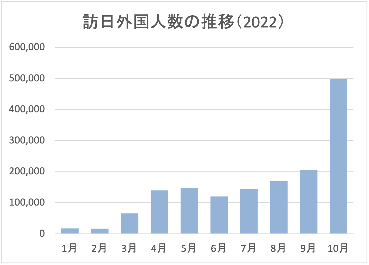 (出典:日本政府観光局(JNTO) 「2022年訪日外客数・出国日本人数」をもとに作成)