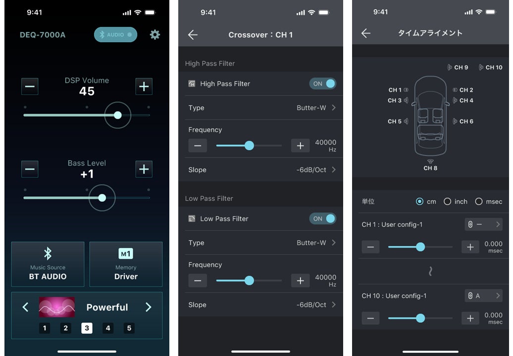 本商品は、車両の純正システムはそのままに、タイムアライメント、イコライザー、スピーカー出力レベルなど、プロセッサーの多彩な音響調整能力を追加することができます。専用のスマートフォンアプリ/パソコン(Windowsソフト)を使用し、好みに合わせた多彩な音響調整を分かりやすいインターフェースとタッチパネルで直感的に操作することが可能です。