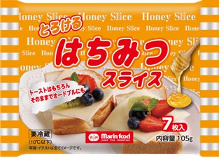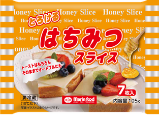 「とろけるはちみつスライス105g」は、チーズ代替素材《スティリーノ》にはちみつを練り込んだ商品です。トーストやオードブルなどに乗せていただくとほんのり甘い風味が広がります。グラタンなど温かい料理にプラスしていただくと、さらにおいしくお召し上がりいただけます。