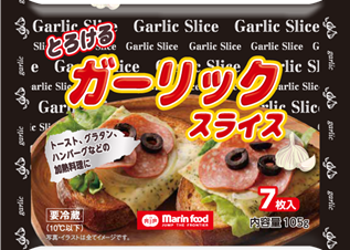 「とろけるガーリックスライス105g」は、チーズ代替素材《スティリーノ》におろしにんにくなどのにんにく素材やスパイスをバランスよくブレンドした商品です。パンや料理にのせると、本物のとろけるチーズのような味わい・食感をお楽しみいただけるとともに、食欲そそるガーリックの風味もプラスすることができます。また、パセリやレッドペッパーを配合しているため、見た目にも華やかで料理に彩りを加えます。