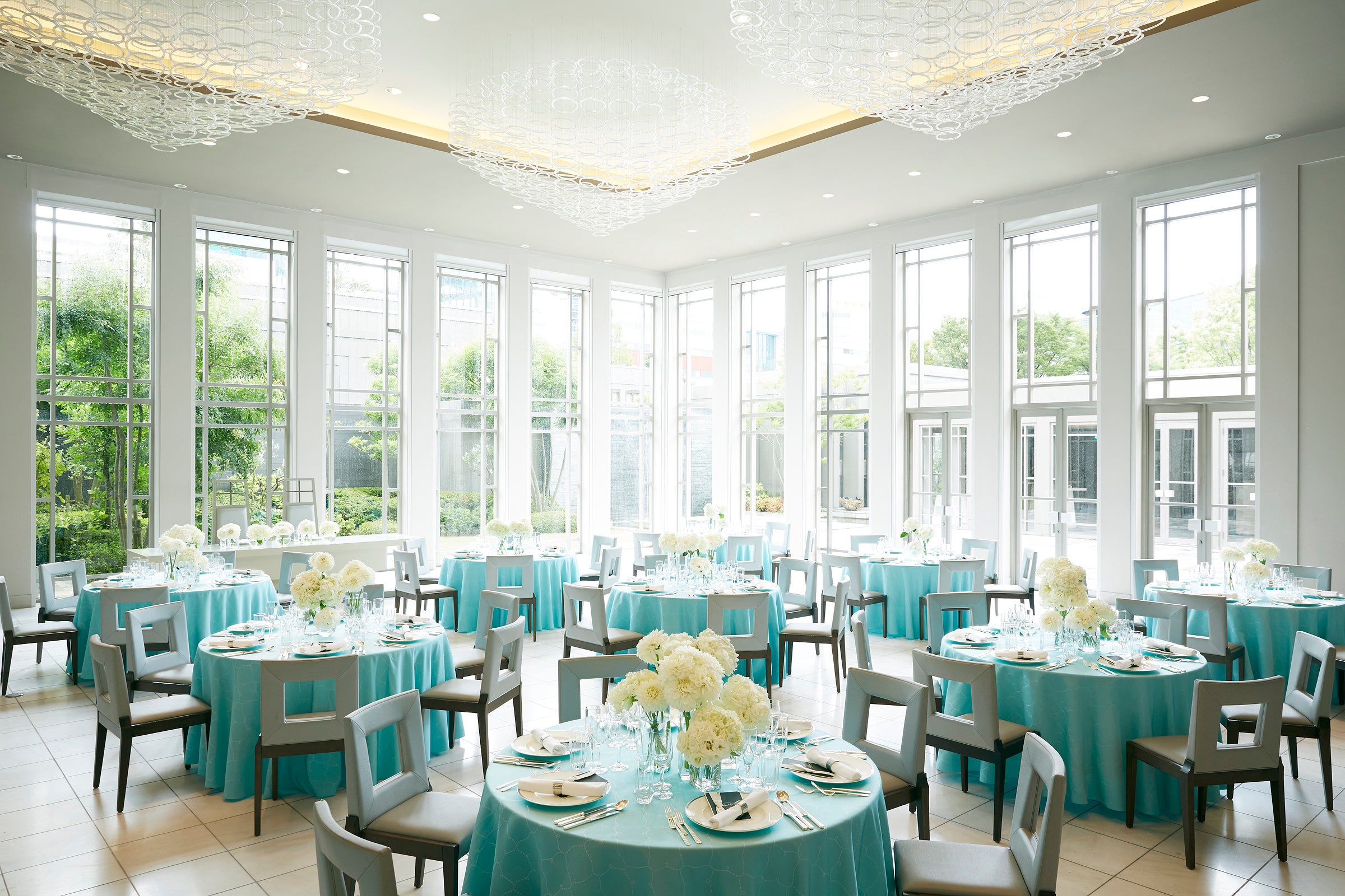 ホテルの閑静な一画に佇むガーデン付き邸宅。大きな窓から陽の光が差し込む華やかな会場では、壁一面をスクリーンにしたダイナミックな映像演出も可能です。また、水と緑、光に満ちた滝の流れるガーデンでは、プライベート空間ならではの寛いだ雰囲気でお過ごしいただけます。