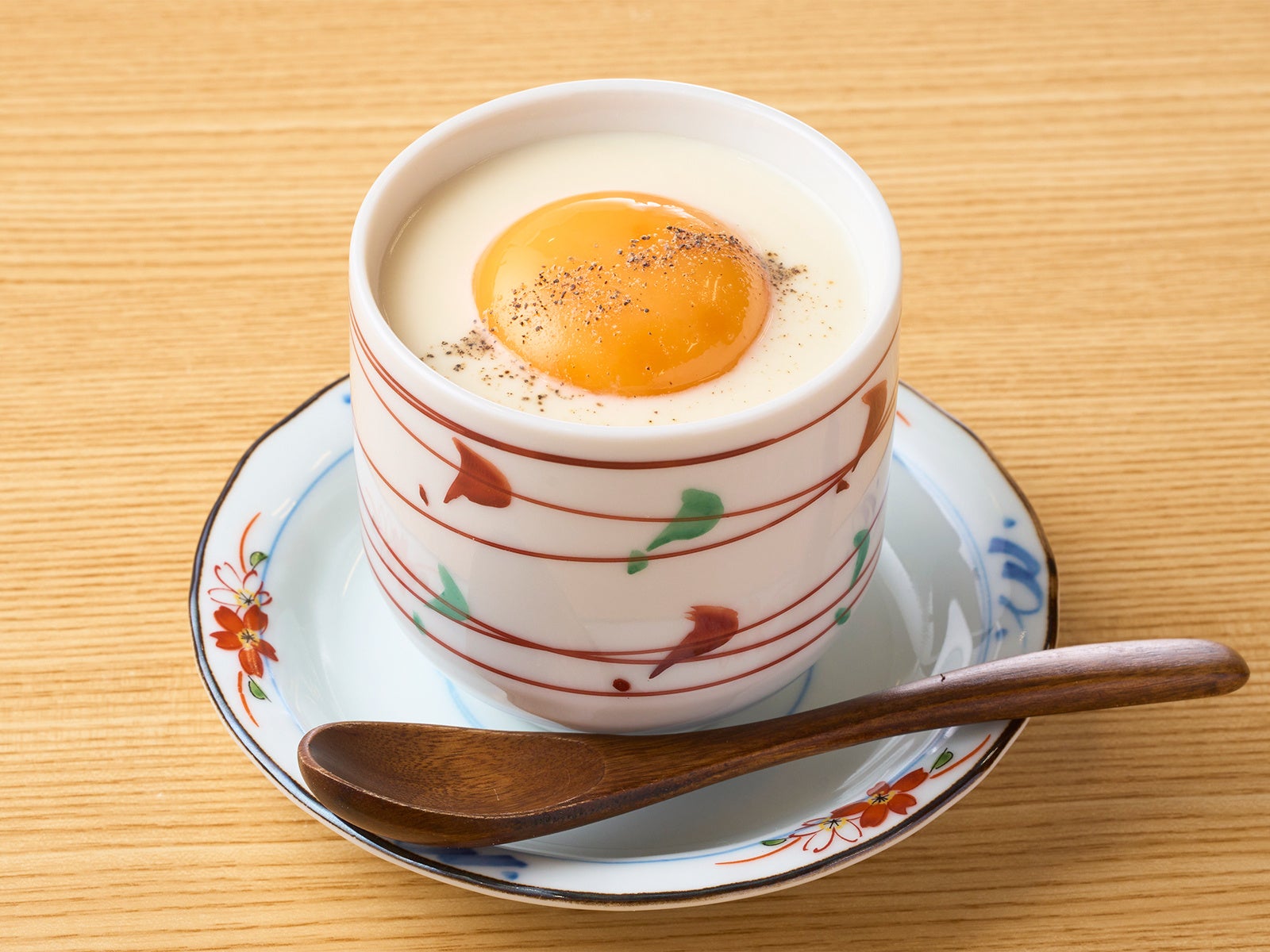 ぷるぷると滑らかな食感と出汁の旨味が効いた逸品!卵黄がより優しい仕上がりに