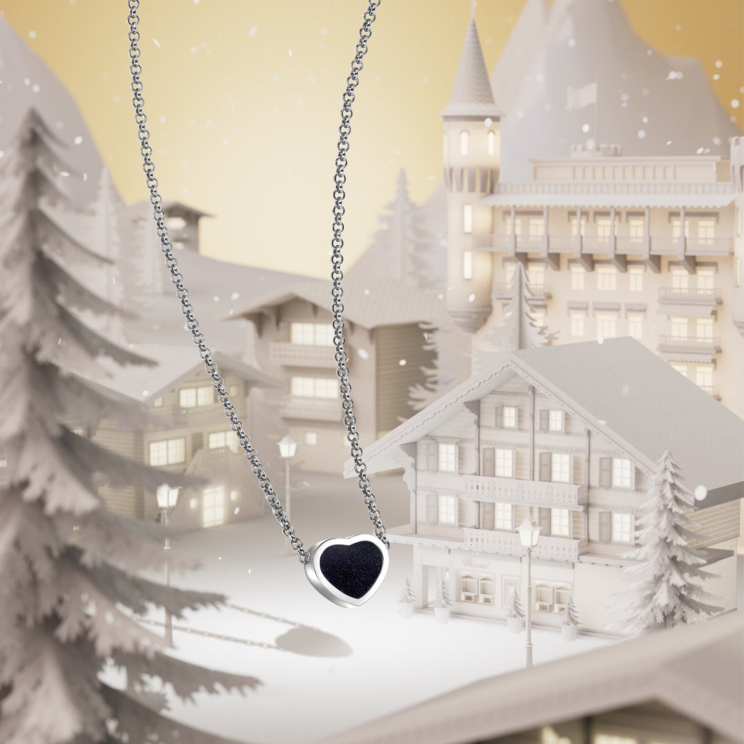 ショパールが2025年のホリデーシーズンに捧げる限定ジュエリーは、アイコニックでチャーミングなハートモチーフをあしらったネックレス「マイ ハッピーハート」。昨年登場時に人気を博したアベンチュリンガラスを、今年はホワイトゴールド製のフレームにセットし、150本のリミテッドエディションとして発売中です。ホリデーシーズンだけの限定ジュエリーは、いまやメゾンを象徴する季節の風物詩へと成熟し、今年も全国のショパールブティック、およびショパール取扱い店舗にて展開しています。