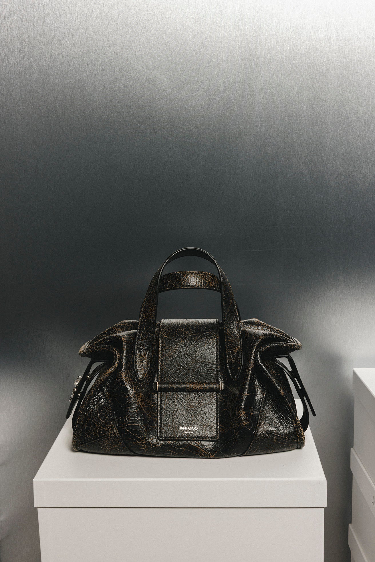 誇張表現、つまり文字通りの高揚感を表現する上で、ブーツは重要な役割を果たしています。JIMMY CHOOの中心的存在であるブーツは、ここでは完成されたワードローブとして提案され、その姿勢と特徴がコレクション全体を形作ります。ブーツは実用的にもフェティッシュにも、華やかにも機能的にもなり得る存在で、日常のためにも、特別なパフォーマンスの ためにも履かれます。そうした多様な概念が本コレクションのインスピレーション源となり、JIMMY CHOOの多様なクリエイションに反映されています。そして今シーズンの主役バッグと組み合わせることで、その力はさらに増幅されるのです。