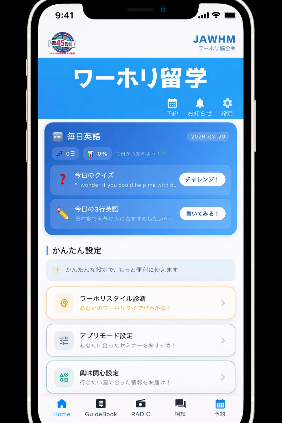 留学・ワーキングホリデー準備アプリ「ワーホリ留学」に、新たな英語学習機能「毎日英語」が登場しました。第二言語習得(SLA: Second Language Acquisition)理論に基づき、AI によるリアルタイム採点・フィードバックを搭載した本格的な英語学習機能です。