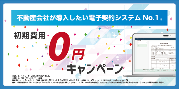 不動産の電子契約本格化に合わせ、お得なキャンペーンを開始!導入するなら今がお得!電子契約 初期費用0円キャンペーン