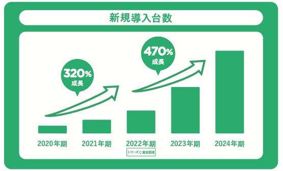「OFFICE DE YASAI」の新規導入台数は2020年期から2022年期のコロナ禍でも320%、2022年期から2024年期においては470%成長を実現しました。