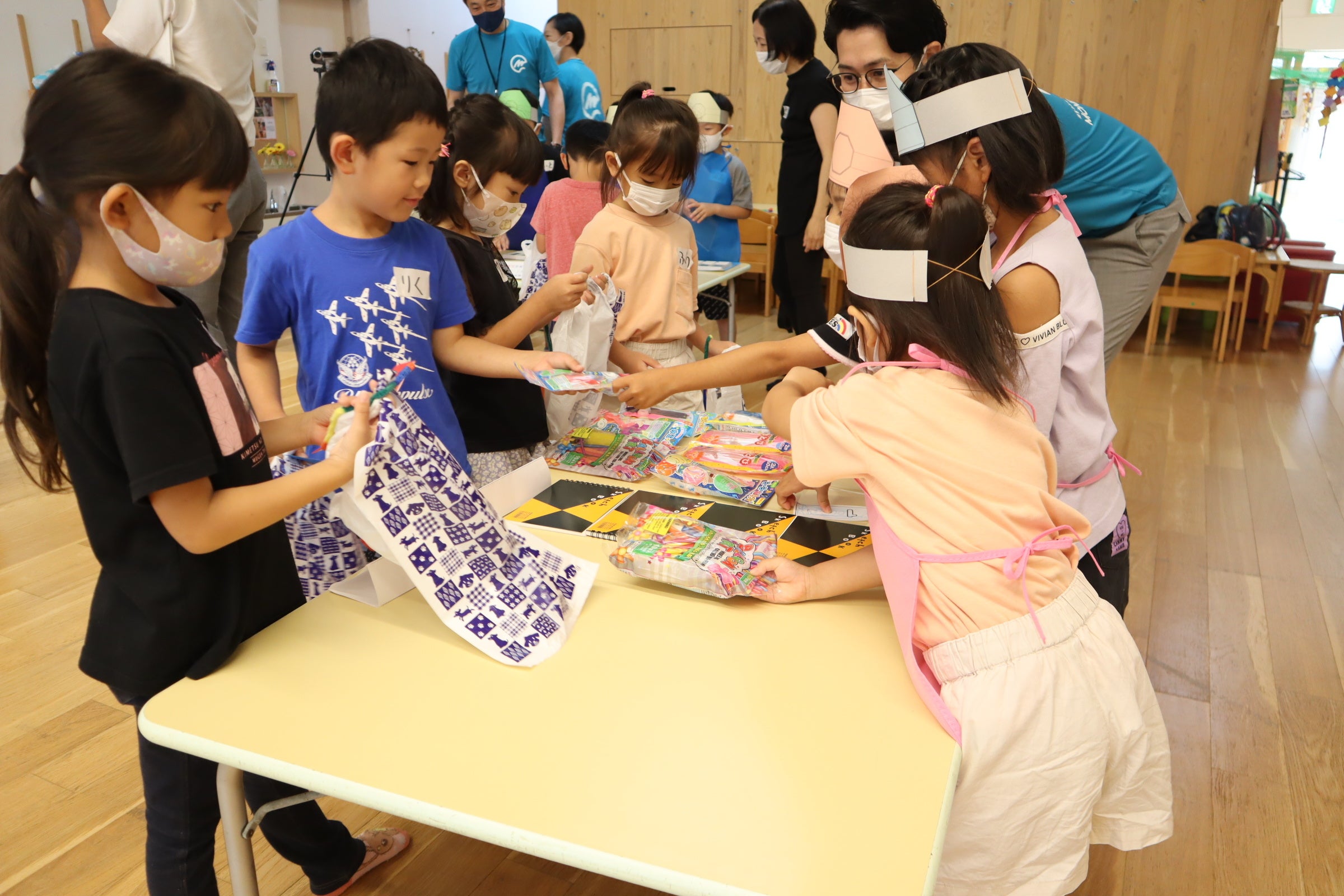 最終日は子どもたちが店長となり、仕入れや開店準備、お金の計算、販売などを体験することで、遊びながら自然に「お金」を学ぶことができるプログラムとなっております。