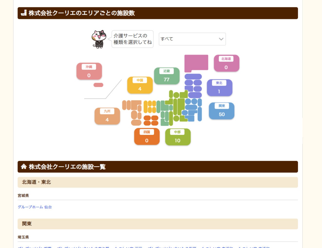 多くの施設を一度に見ることで、その法人が運営する施設の特徴を知ることができます。