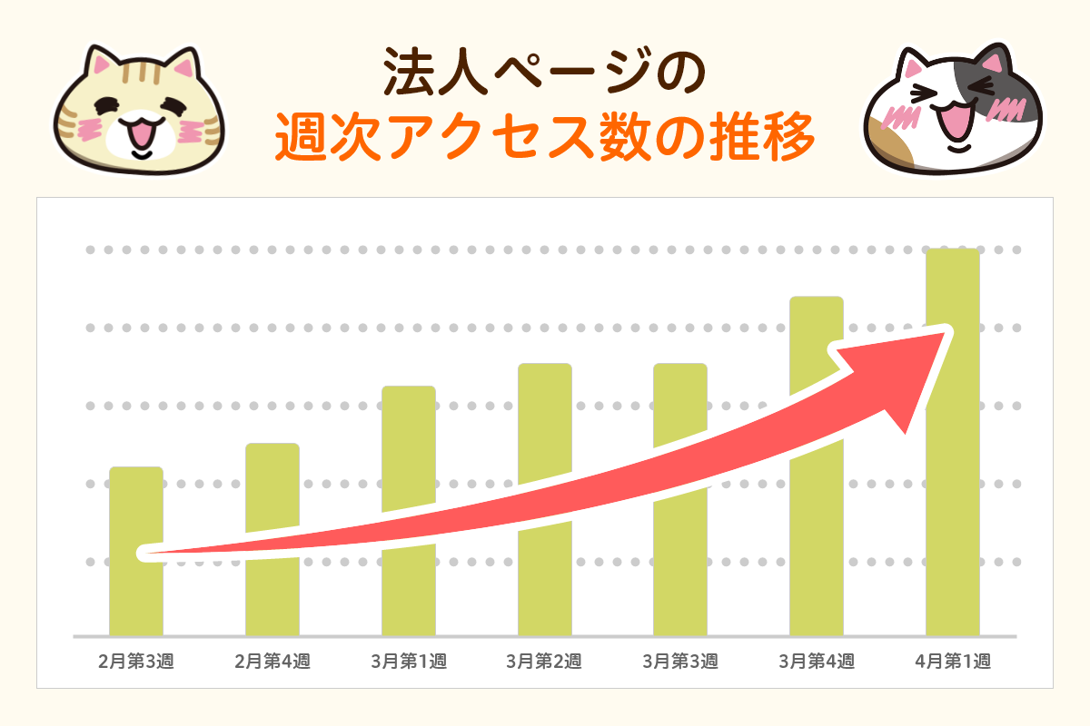 - 実装から1か月半で法人ページアクセス数が2.5倍に向上