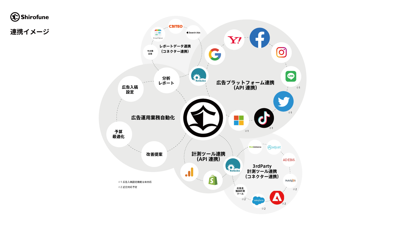Shirofuneは、「1日10分でプロ品質の広告運用」を実現する、広告運用自動化ツールです。