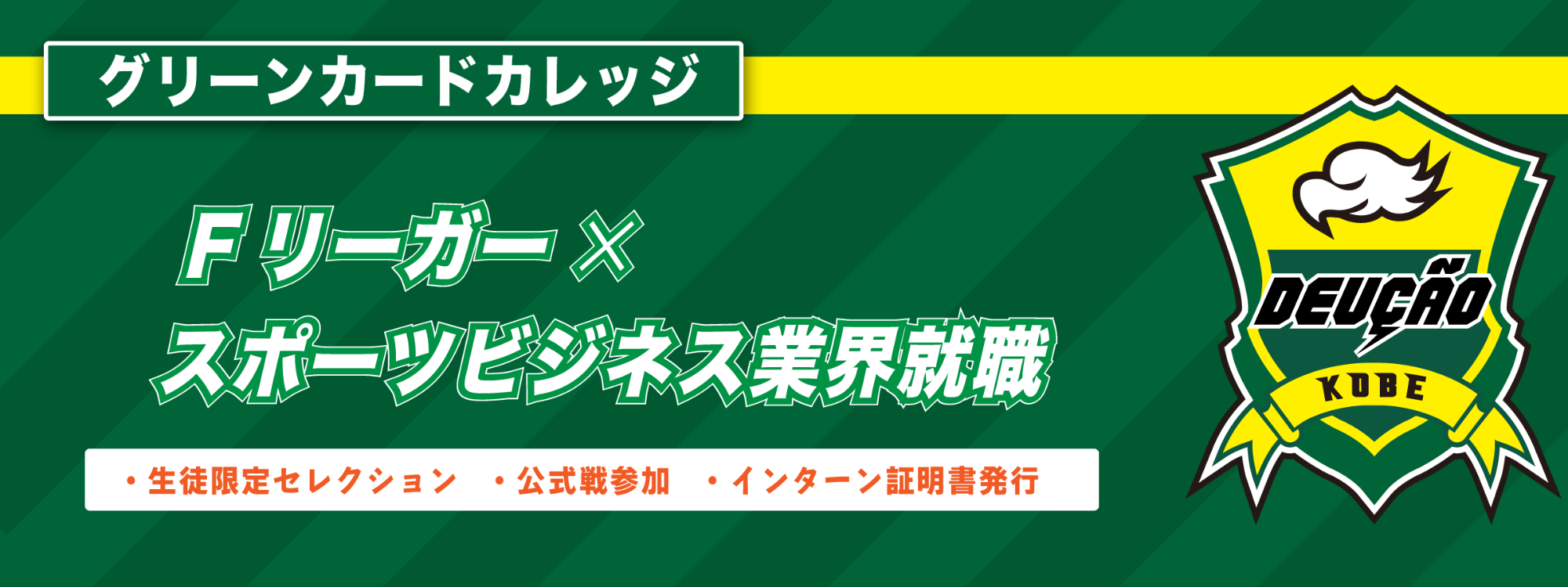 Fリーガーに挑戦すると同時に、就職において即戦力となる実地体験をこなすカリキュラムを備えたコースを、株式会社グリーンカードがデウソン神戸サテライトを舞台に2022年7月から開講します。