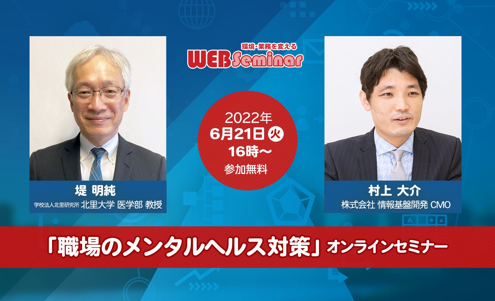 今回のセミナーでは、約1,000名の会員数を数える日本最大の産業ストレス/メンタルヘルスに関する学会「日本産業ストレス学会」の理事長を務める北里大学の堤教授に登壇いただき、当社・情報基盤開発と「職場のメンタルヘルス対策」をテーマにした共催セミナーを行います。