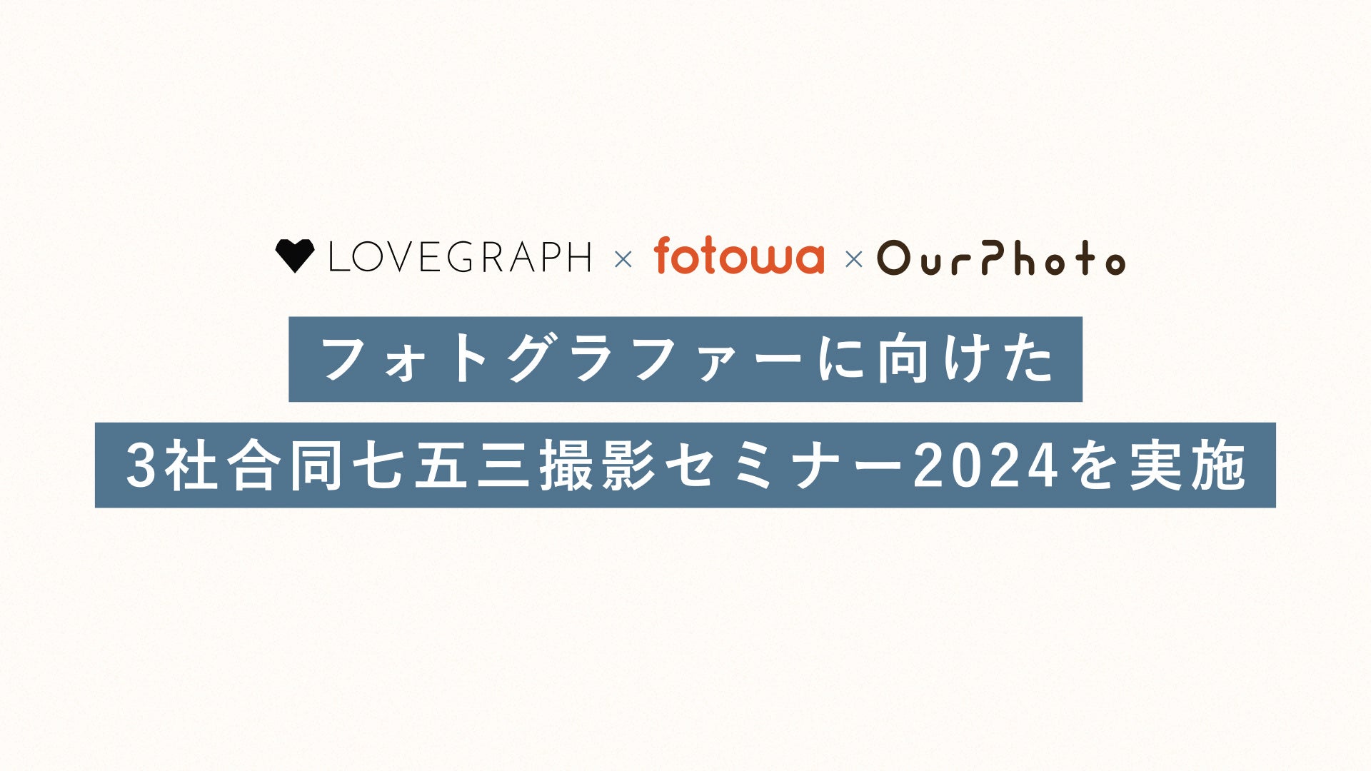 出張撮影サービス「Lovegraph(ラブグラフ)」を運営する株式会社ラブグラフ(本社:東京都渋谷区、代表取締役:駒下 純兵、本間達也、以下「ラブグラフ」)は、ピクスタ株式会社(東京都渋谷区 代表取締役:古俣 大介、以下「ピクスタ」)が展開する「fotowa」、OurPhoto株式会社(東京都中央区 代表取締役:田中 偉嗣、以下「OurPhoto」)が展開する「OurPhoto」と協力し、昨年同じく3社が共同で制定した「神社仏閣撮影ガイドライン」を元に各社に所属するフォトグラファーへ向けた「七五三撮影セミナー」を9月17日(火)に合同実施したことをお知らせいたします。
