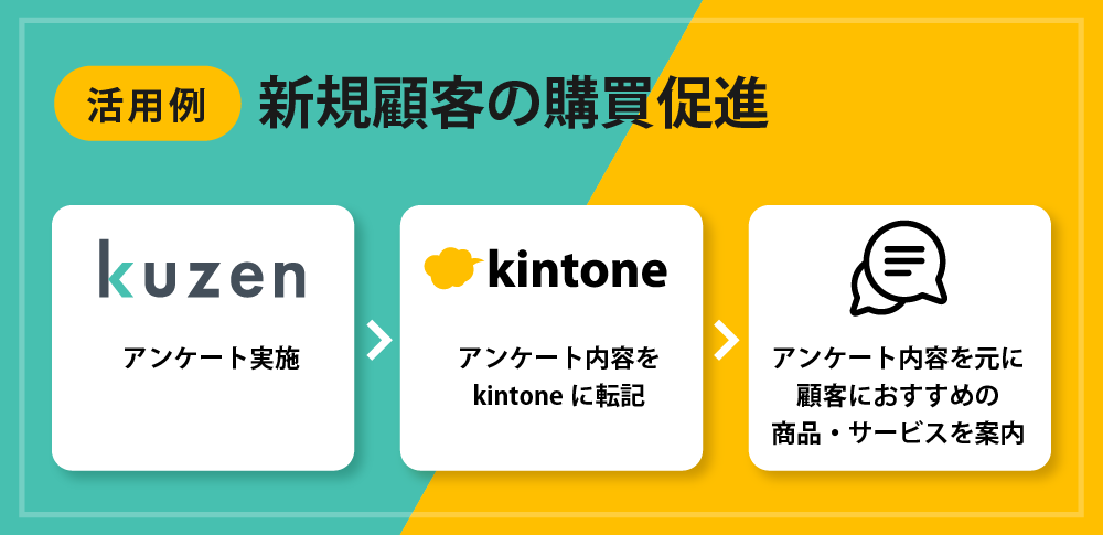 今回のパートナー認定によりサイボウズ株式会社が提供する「kintone」と当社のプロダクト「KUZEN」が連携し、kintoneで取得した顧客属性や行動履歴などのデータを元にLINE公式アカウントやWEBサイト上において一人ひとりにマッチした特別な顧客対応が可能になります。