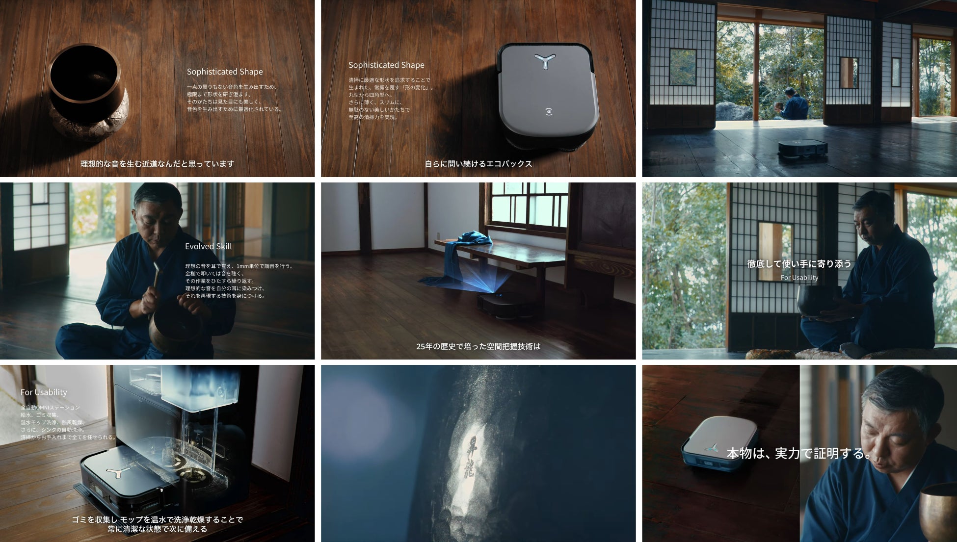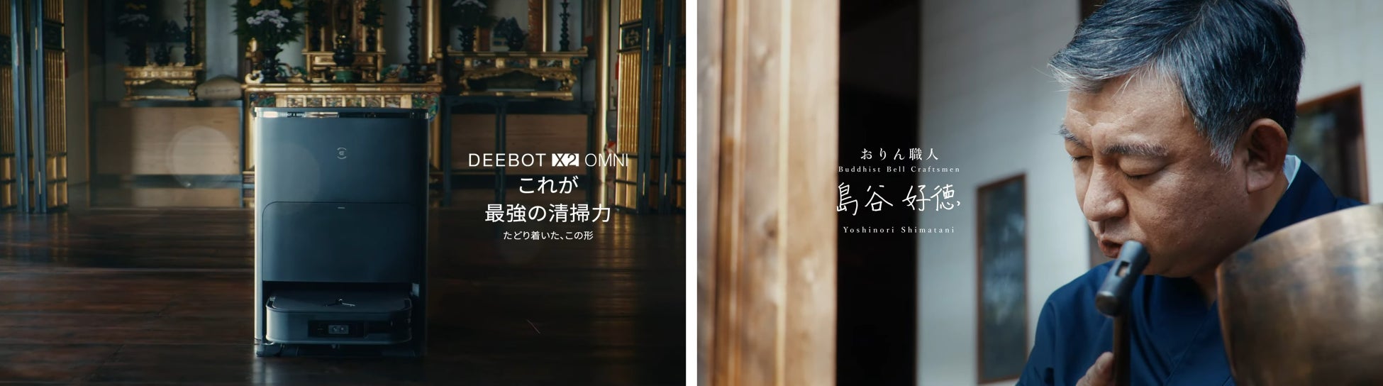 「本質を突きつめ生まれるかたち」「徹底して使い手に寄り添う」など、おりん職人としての信念を語っていただく中、DEEBOTが工房内を効率よく清掃します。おりんとDEEBOTには、共通する信念・ものづくりへのこだわりが徐々に見え始めたところ、調音を終えて晴れ晴れとした表情になる島谷氏と、清掃を終えて全自動ステーションに入る「DEEBOT X2 OMNI」。「本物は実力で証明する」というメッセージで、スペシャルムービーは締めくくられます。
