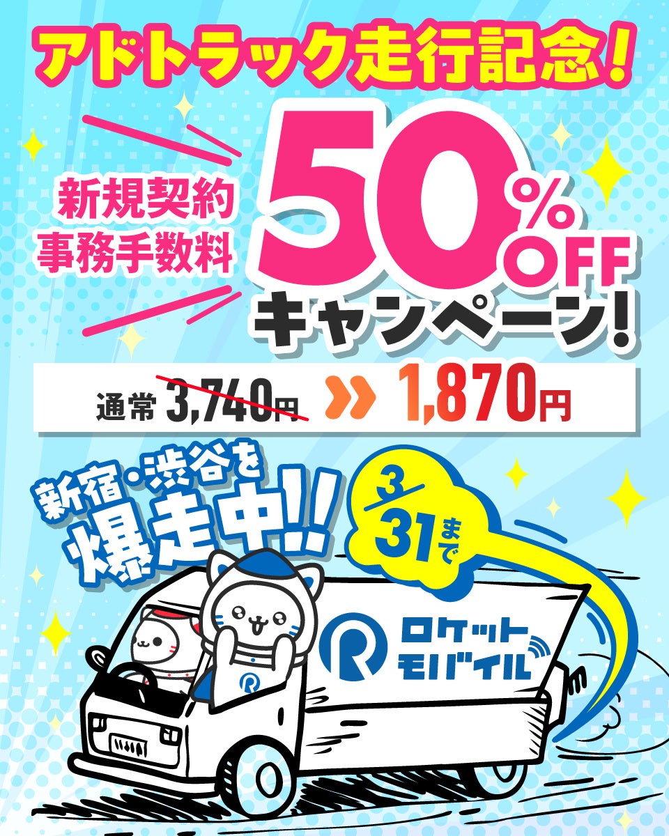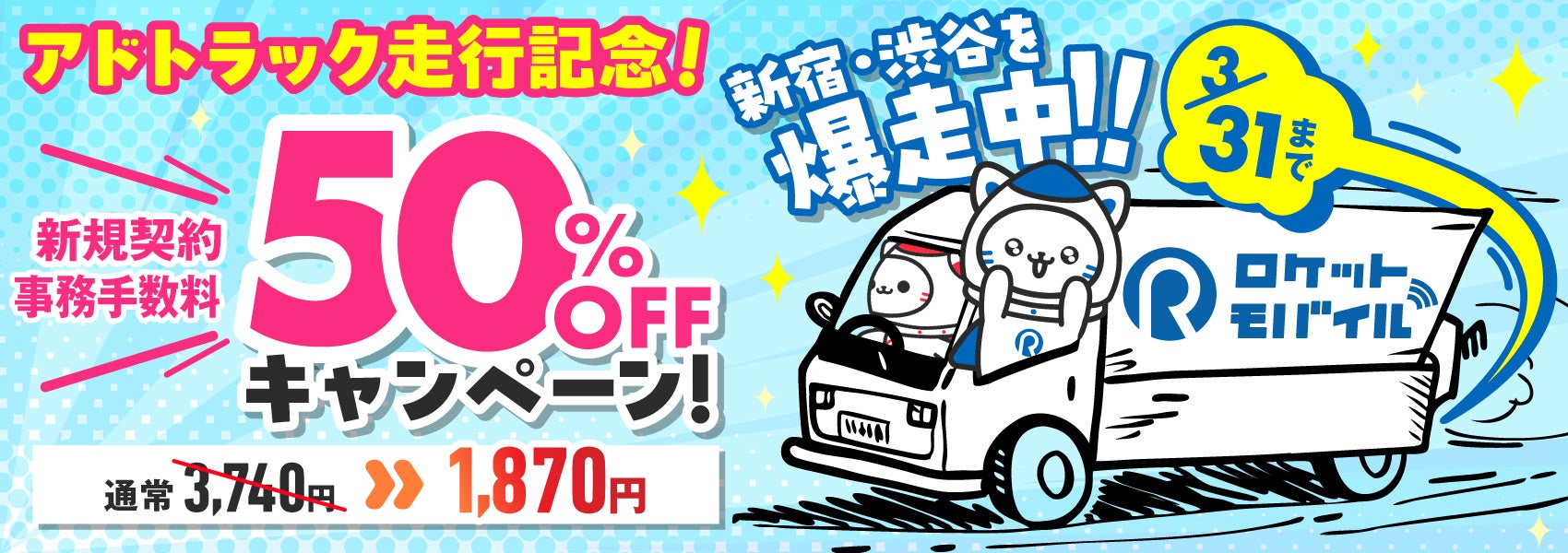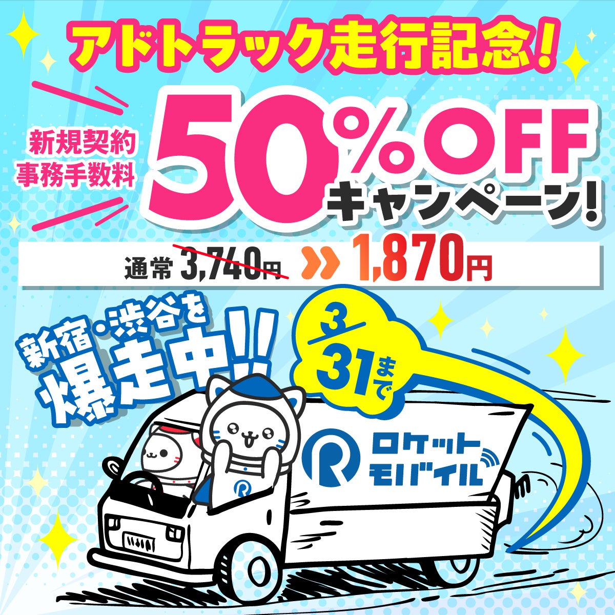 アドトラック走行開始を記念し、2025年3月1日(土)から2025年3月31日(月)までの間に対象プランをお申し込みいただいたお客様を対象に、新規契約事務手数料50%割引いたします。