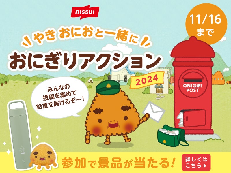 また、ニッスイではこれに連動したプレゼントキャンペーン「やき家と一緒におにぎりアクションWEEK」を同期間に開催、ウェブサイトでの情報発信などで「おにぎりアクション2024」を盛り上げます。