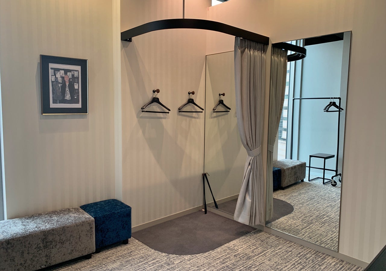 個室空間で快適にオーダーできるプライベートフィッティングルーム(無料/要予約)をご用意しております。