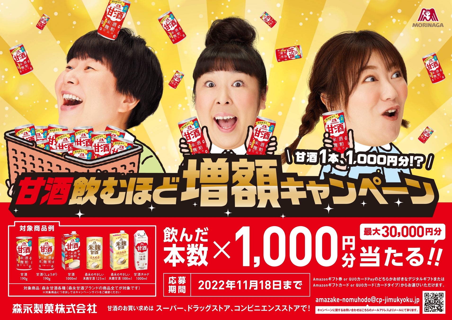 また、「甘酒オリジナルクオカード」や「Amazonギフト券」が最大で3万円分当たる「甘酒飲むほど増額キャンペーン」を9月19日(月)から開始します。