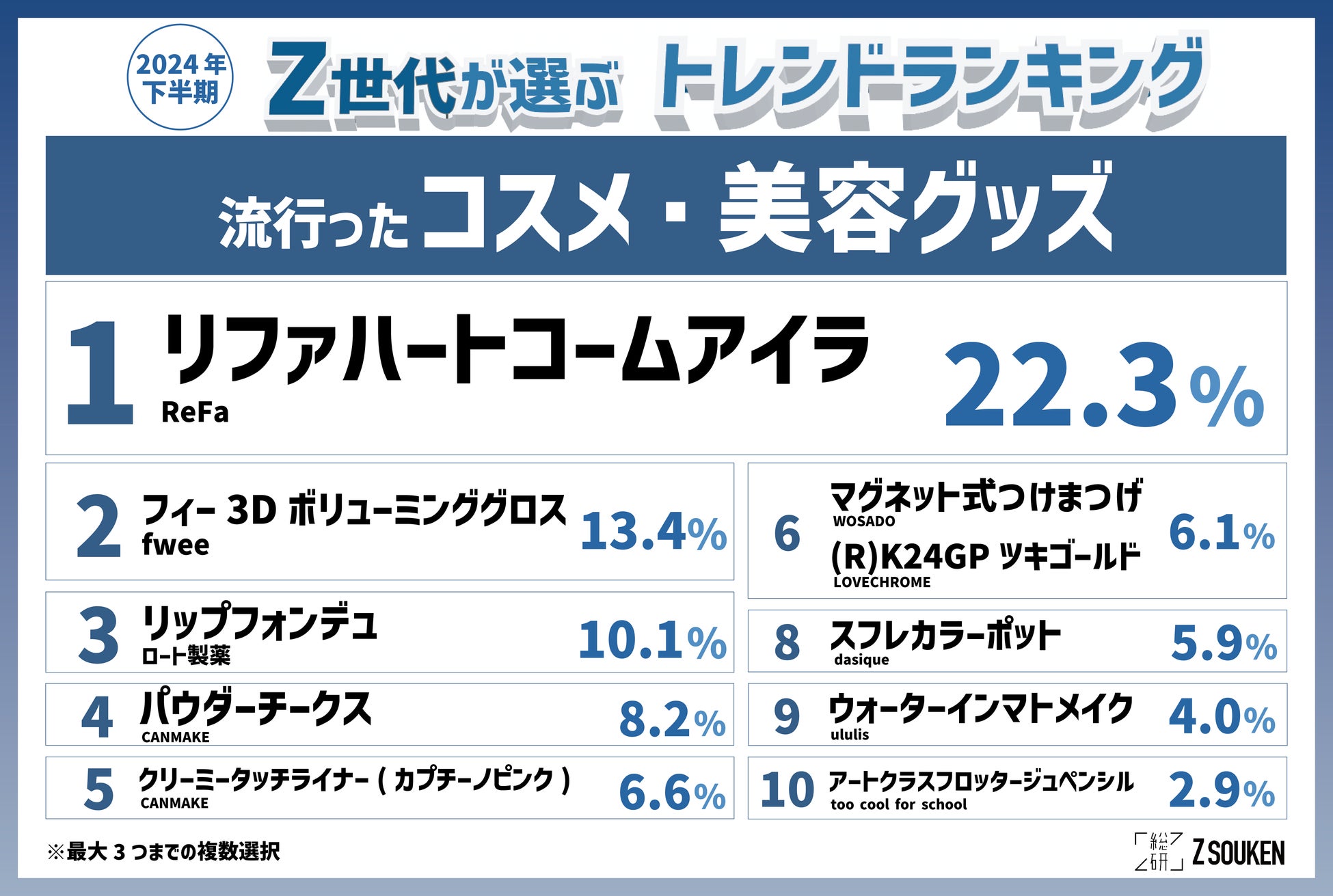 Z総研は株式会社N.D.Promotionが運営するNom de plume(ノンデプルーム)読者でありトレンドに敏感なZ世代女子を中心としたZ総研独自のリアルZ世代コミュニティ所属のメンバーへの2024年下半期トレンド調査を行い、『Z総研2024年下半期トレンドランキング』を発表します。