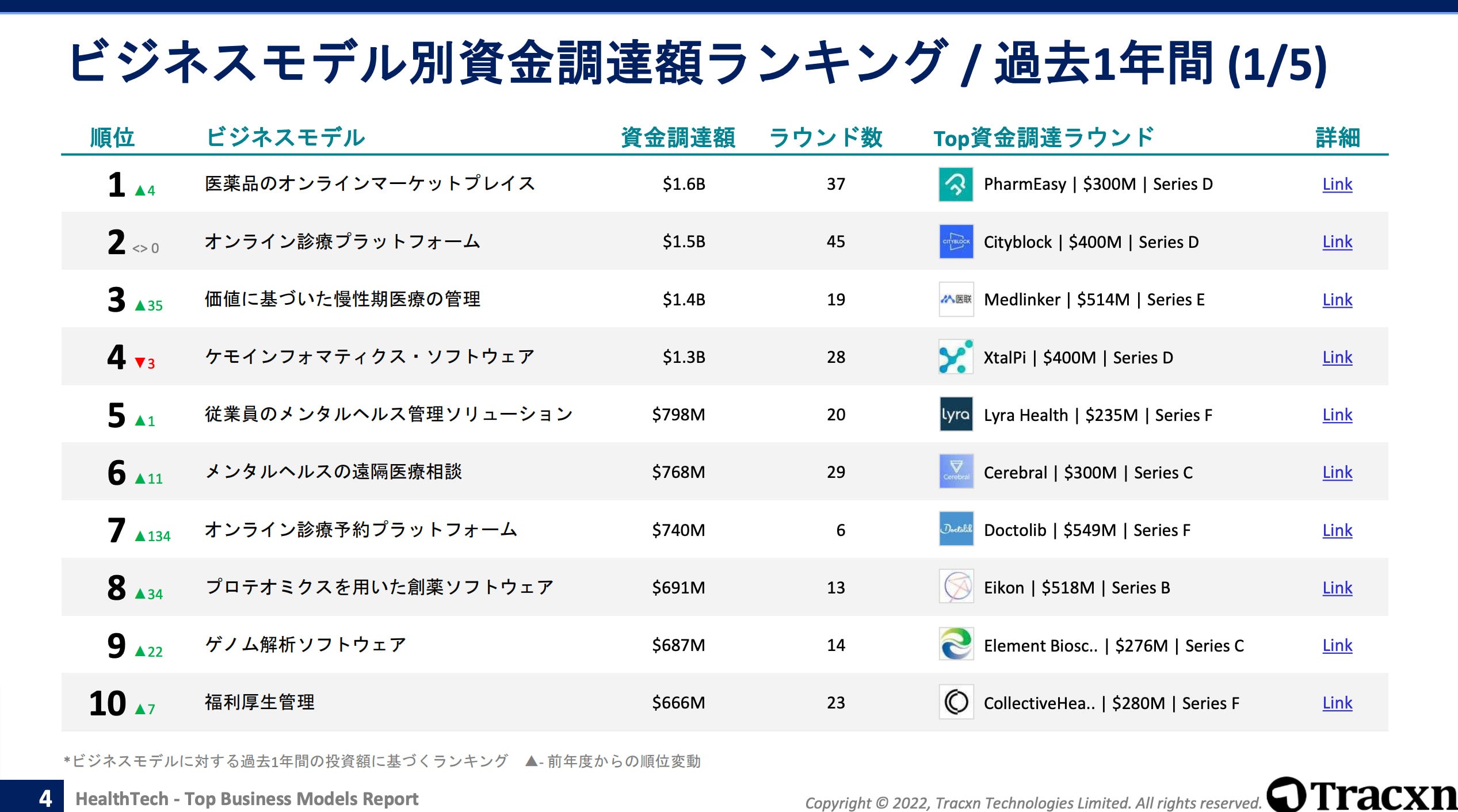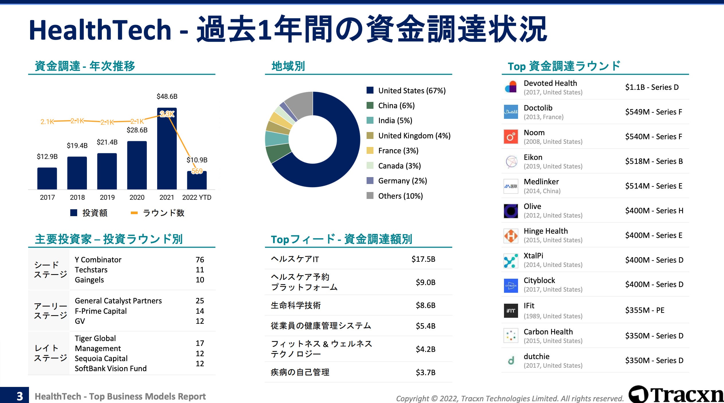 Tracxnとパートナーシップを結ぶTECHBLITZは今回、「ヘルステック カテゴリ別資金調達動向」を日本語版でリリースいたしました。