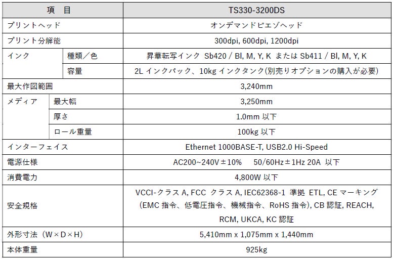 ダイレクト昇華と昇華転写プリントを1台で!3.2m幅スーパーワイドハイブリッドプリンタ「TS330-3200DS」を発売