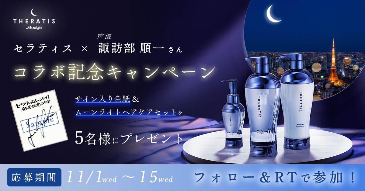 「セラティス ムーンライト スリーク」の発売を記念して、プレゼントキャンペーンを実施。X(旧 Twitter)公式アカウント(@miximjapan)をフォロー&リツイートすることで応募が可能です。抽選で5名様に「諏訪部順一さん 直筆サイン入り色紙」と、「セラティス ムーンライト ヘアケアセット(シャンプー・ヘアトリートメント・ヘアオイル)」が当たります。