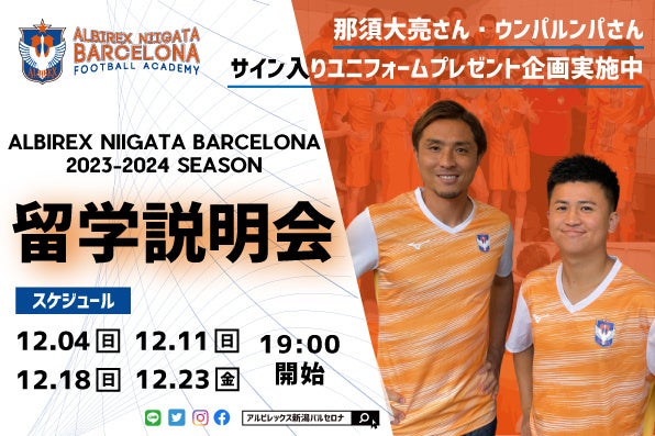 【アルビレックス新潟バルセロナ】留学説明会開催のお知らせ