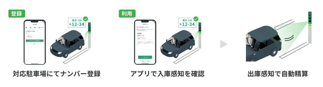 今回、ナンバー認証システムと決済システム「ナンバーペイ」を連携することにより入庫から出庫、料金決済までを1タップで実現することが可能になりました。精算機を使わずに料金支払いが可能な駐車場は存在しますが、本サービスでは画像認識技術と決済システムを組合わせることで、車室の選択や複数の決済プロセスを行う必要がなく、1タップだけで支払いまでを完結し、ユーザーフレンドリーな新たな駐車場体験を創出します。