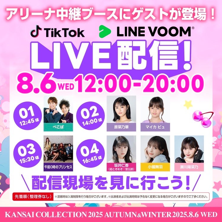 関西コレクションが全面プロデュースをする「学生ランウェイ」のスペシャルステージ!5月に開催された「GAKUSEI RUNWAY 2025 SUMMER」の参加者から受賞者を、アリーナで実施する関コレライブ配信で発表。見事選ばれたグランプリモデルたちが関コレステージにデビューする、日本中の女子学生の夢や憧れを実現したステージに大注目!さらに、YouTube登録者数100万超えの森ケの日常や藤田みあがランウェイを歩きます。