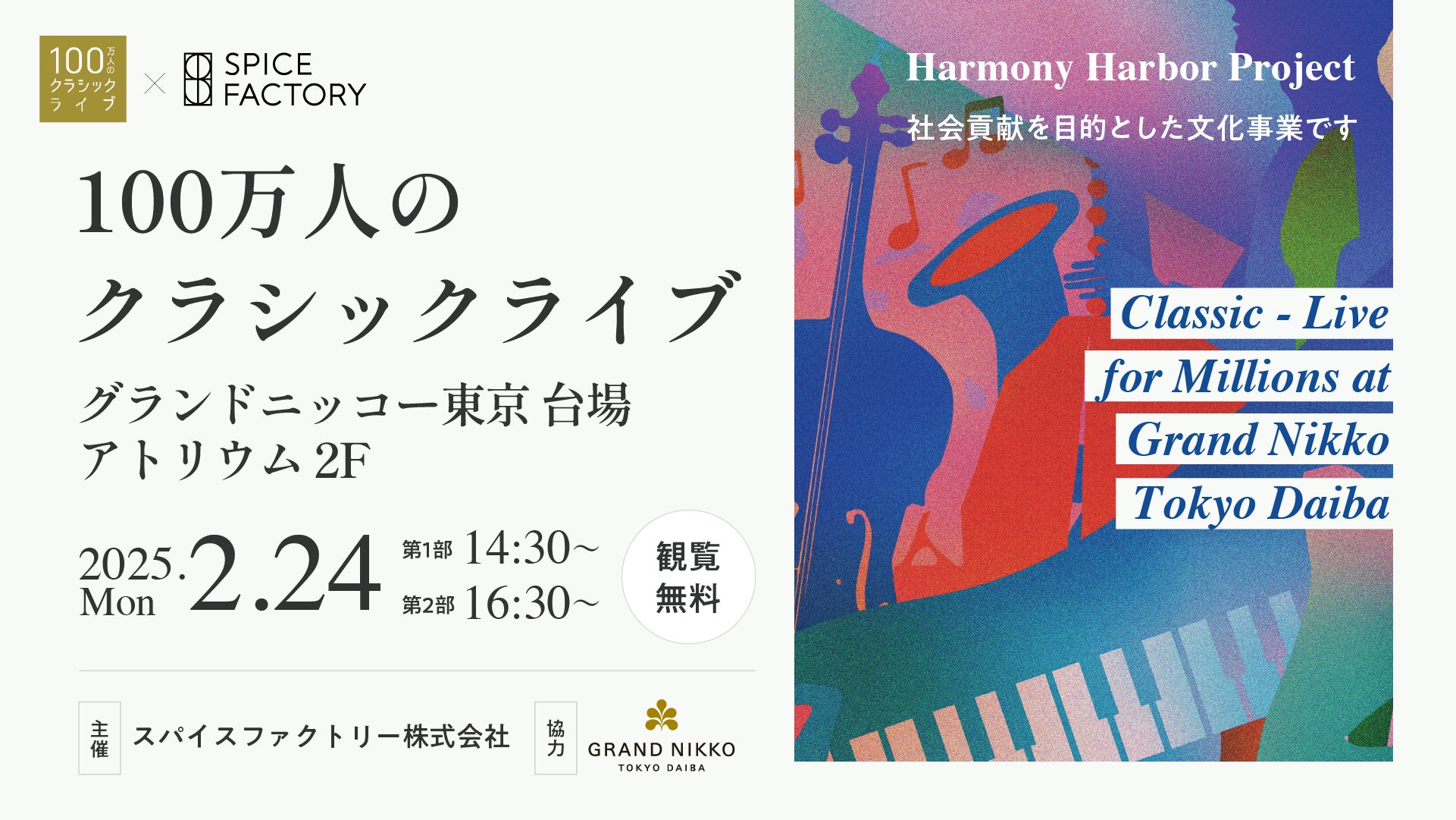 スパイスファクトリーが贈る【100万人のクラシックライブ】~グランドニッコー東京 台場にて2月24日(月)に開催~