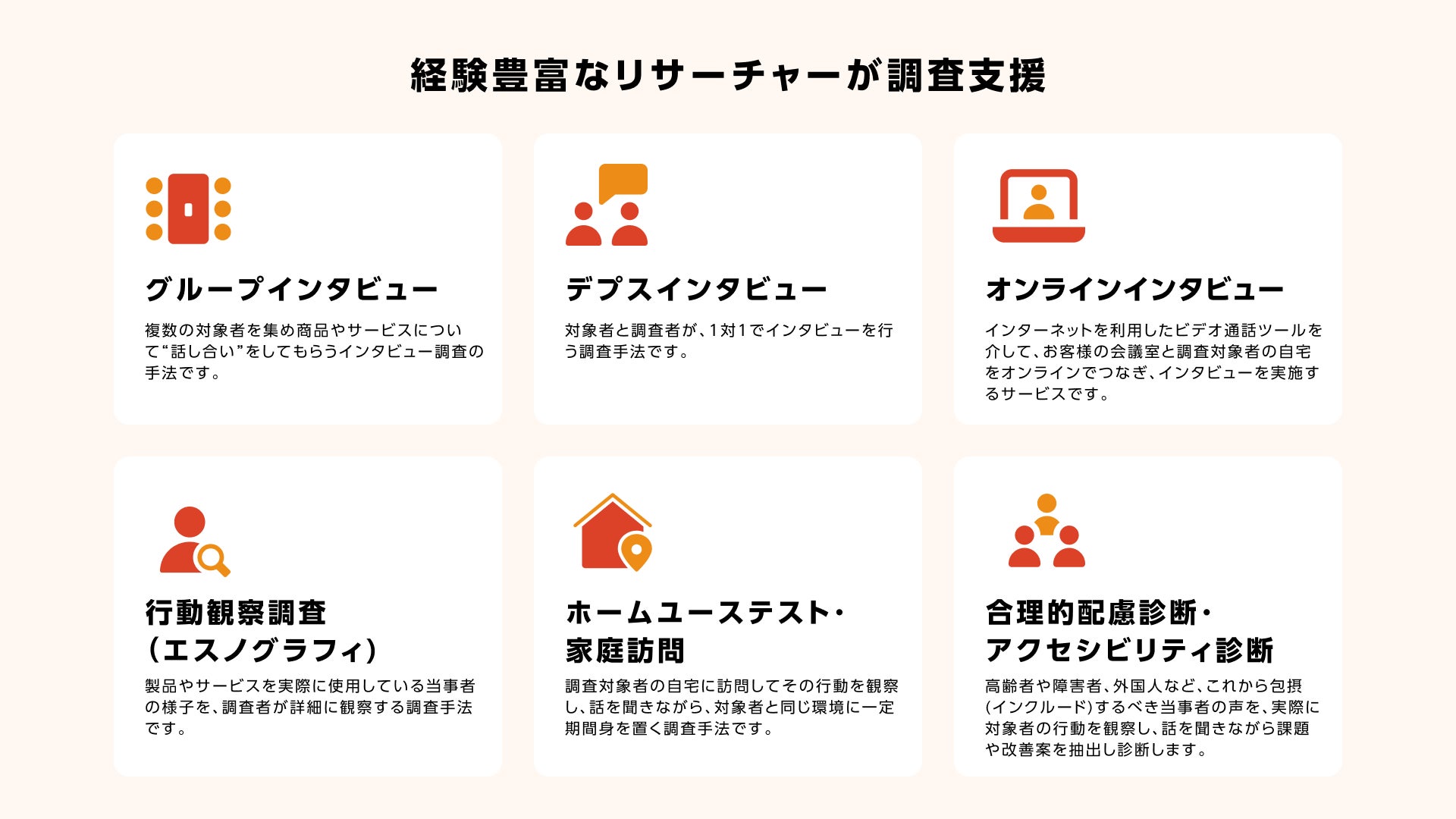 一人ひとりの価値観や心理の理解と発見のための定性的な調査手法を提供しています。
