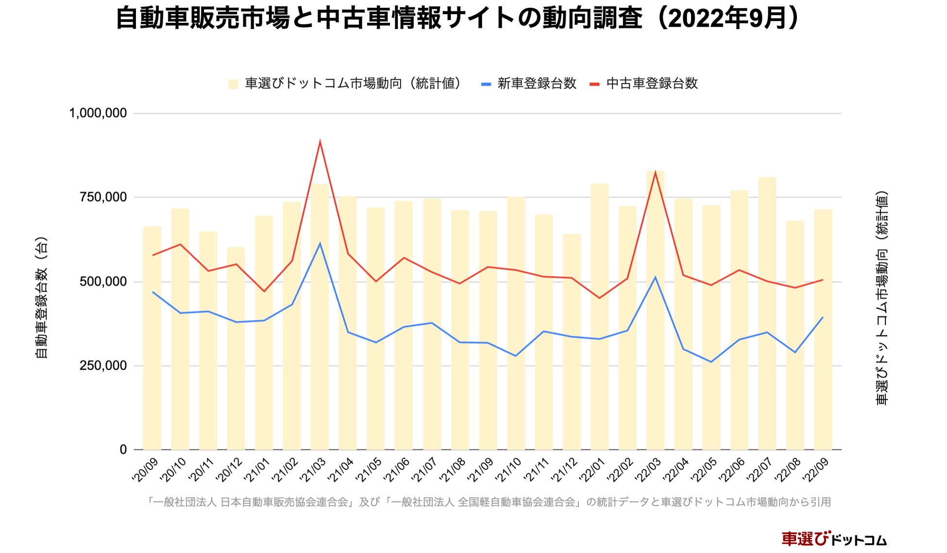 - 中古車情報サイト「車選びドットコム」の動向(2022年9月)