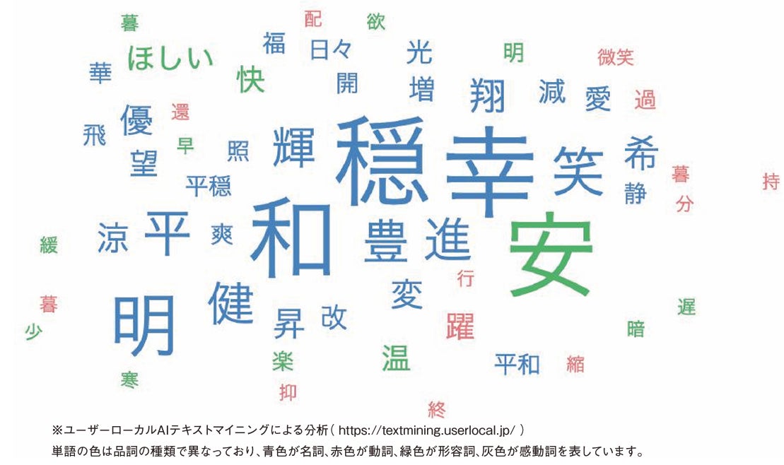 平穏な日々を連想する「穏」「和」「安」などの漢字は毎年上位にランクインするが、1位・2位が「平」「和」と世界情勢への不安が反映された2024年に比べると、「穏」「幸」「和」 「安」など穏やかな幸せの継続を望む結果となりました。自身やその周りの人が安定して穏やかに過ごしてほしい、という共感性の高い女性ならではの願いが顕著に現れています。