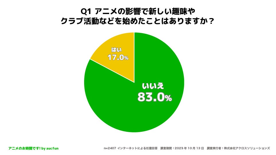 Q1 アニメの影響で新しい趣味やクラブ活動などを始めたことはありますか?