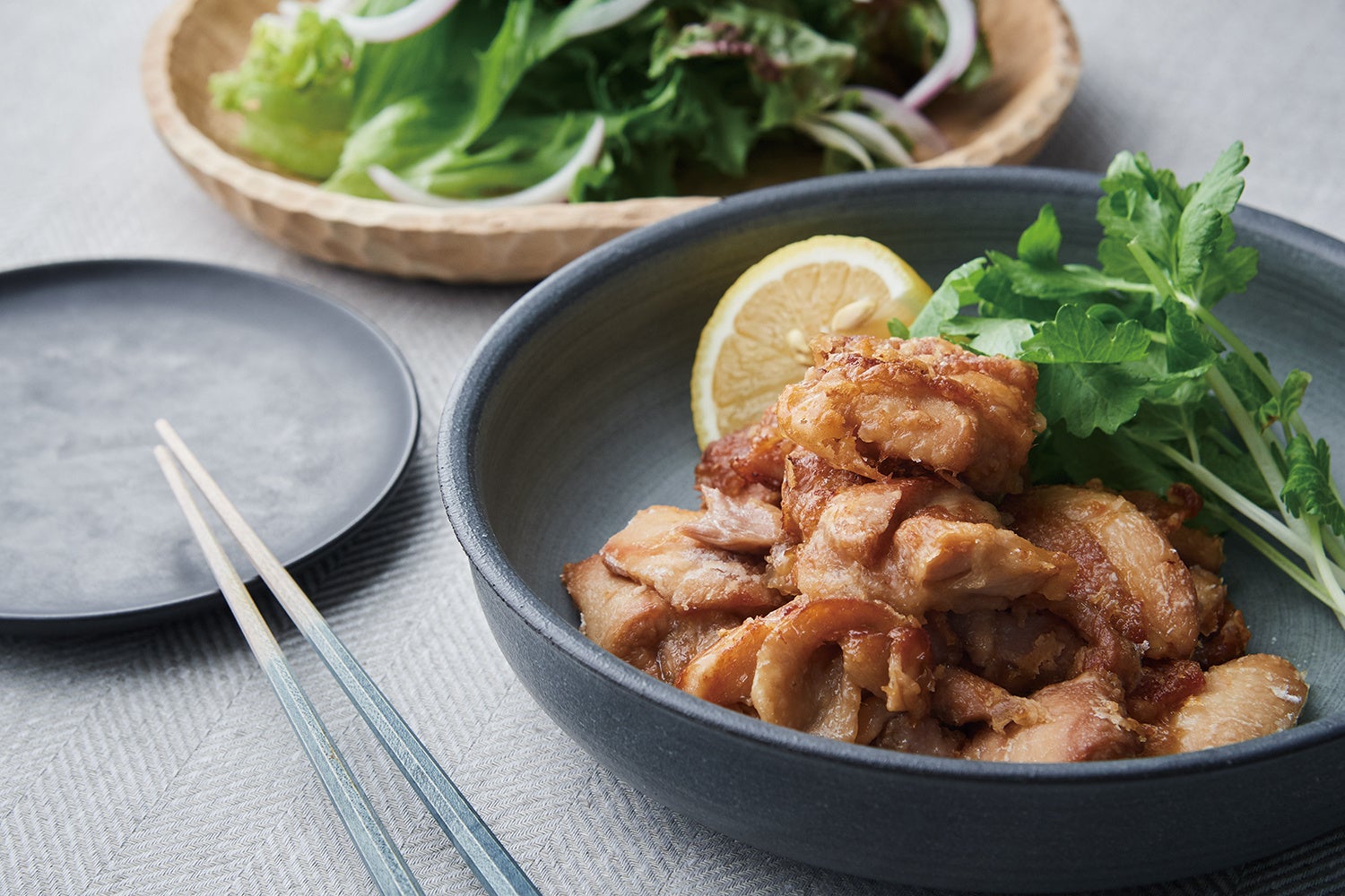 鶏肉も下味をつけてそのまま焼くだけでも立派なごちそうに。皮目がパリパリで香ばしく焼きあがります