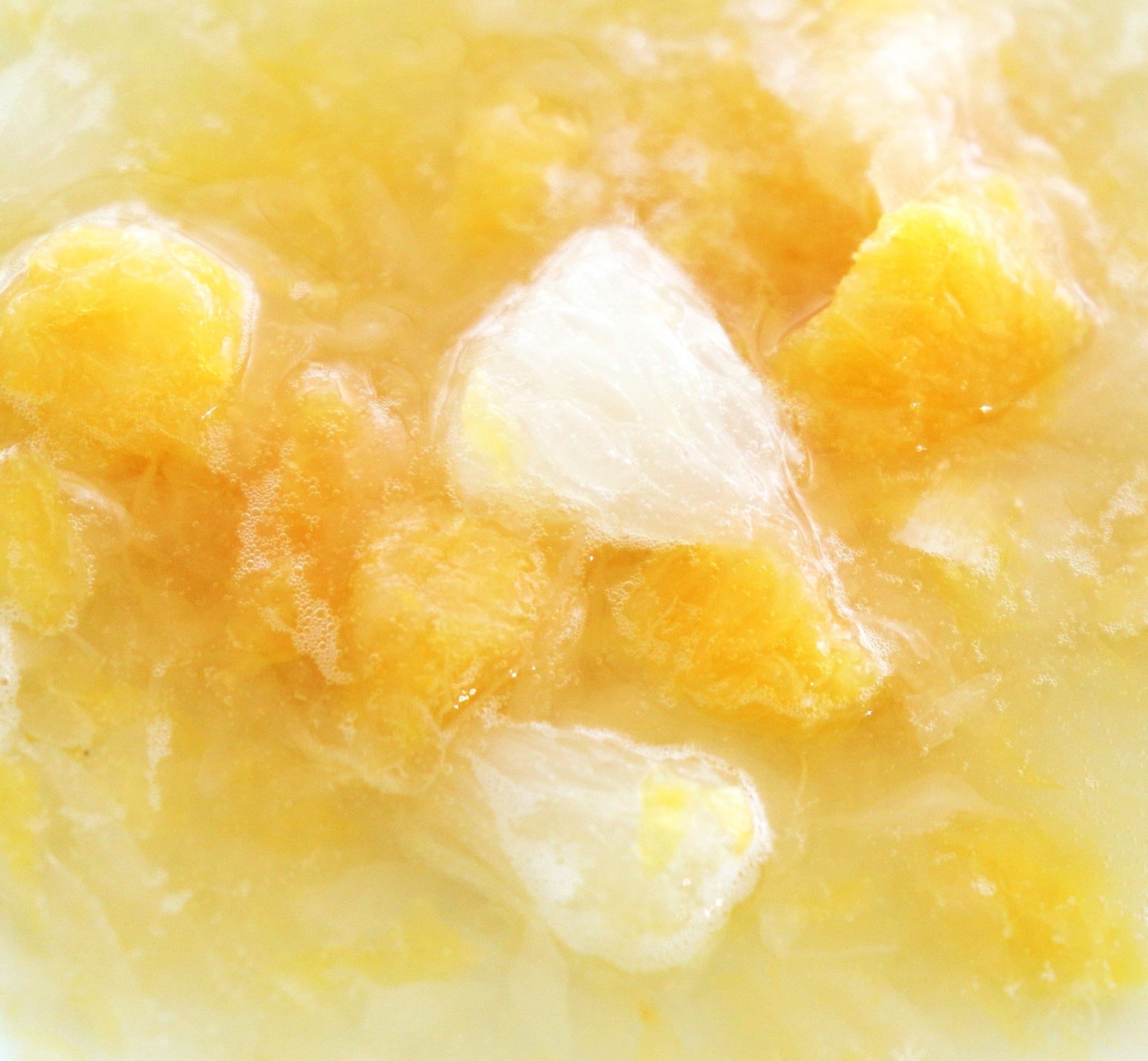 果肉と果汁で作った冷凍フルーツです。特許技術により凍ったままでほぐしやすく仕立てています。少しだけほぐしてひんやり冷たく食べたり、よくほぐして溶かしながら、みずみずしい果汁やねっとりとした果肉の口当たりを感じたりと自分好みにフルーツの味わいを楽しめます。