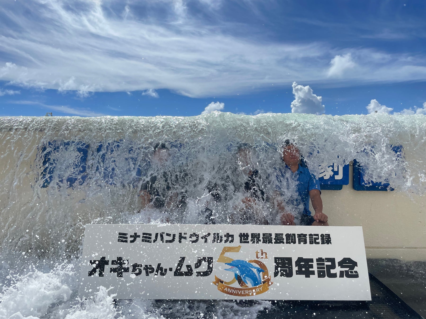 アクリルの目の前、スプラッシュゾーンでは、バンドウイルカの「カーヤ」と「イヴ」が、サイドスプラッシュや自慢の尾びれを使って、皆さまに涼しい水しぶきのプレゼント! さらに、大人のお客様限定の「ずぶ濡れコース」では、体重600キロを超えるオキゴンドウの「ゴンちゃん」が、まるで波のような豪快なしぶきを、頭から足先までお届けします。目の前で繰り広げられるダイナミックなパフォーマンスに、思わず息をのむ臨場感! この夏は、イルカたちと一緒に、最高にクールなひとときをお楽しみください!
