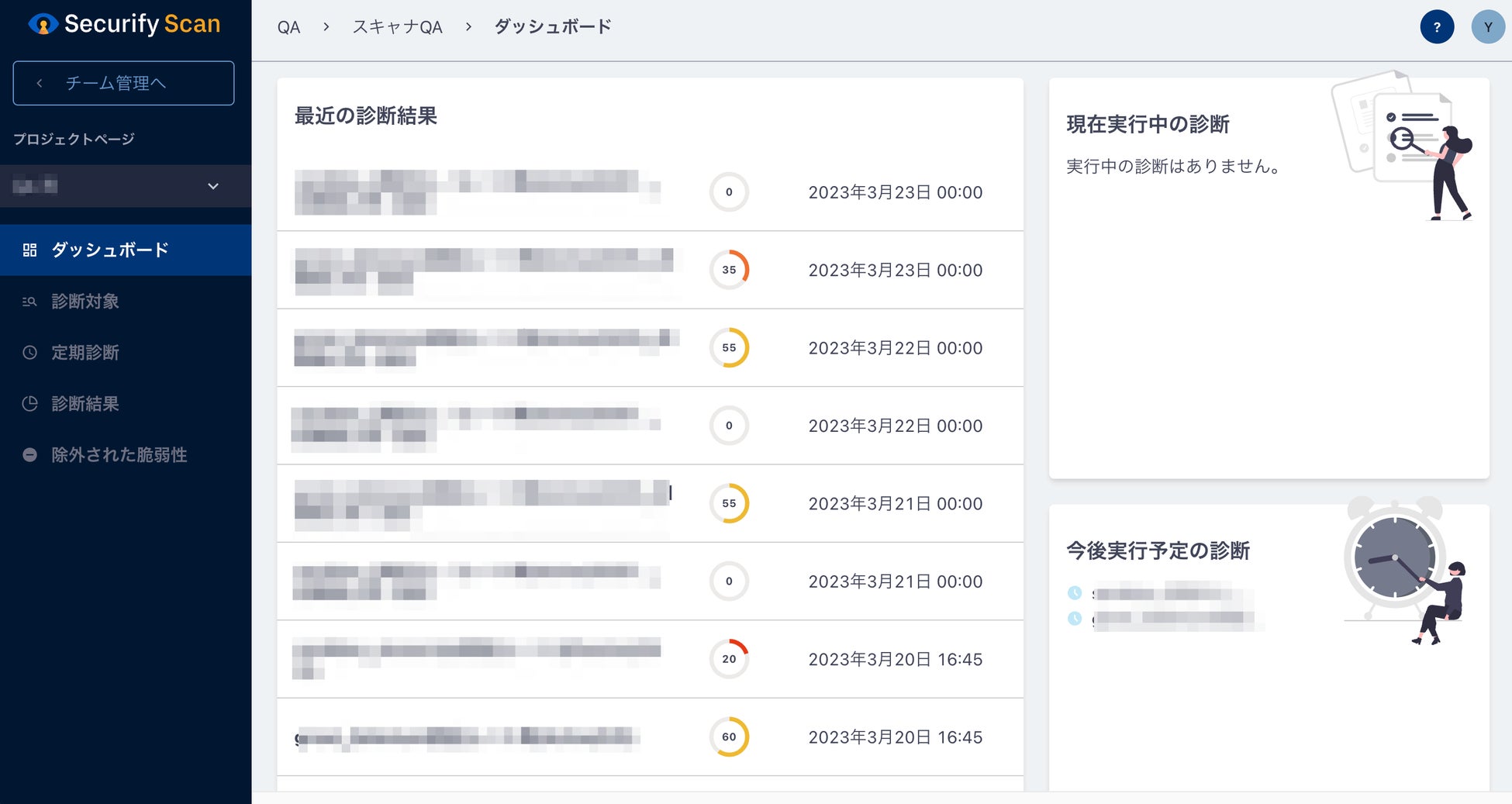 ・最新の診断結果や、診断の状況、発見された脆弱性の推移など、現在のステータスを直感的に把握できます。