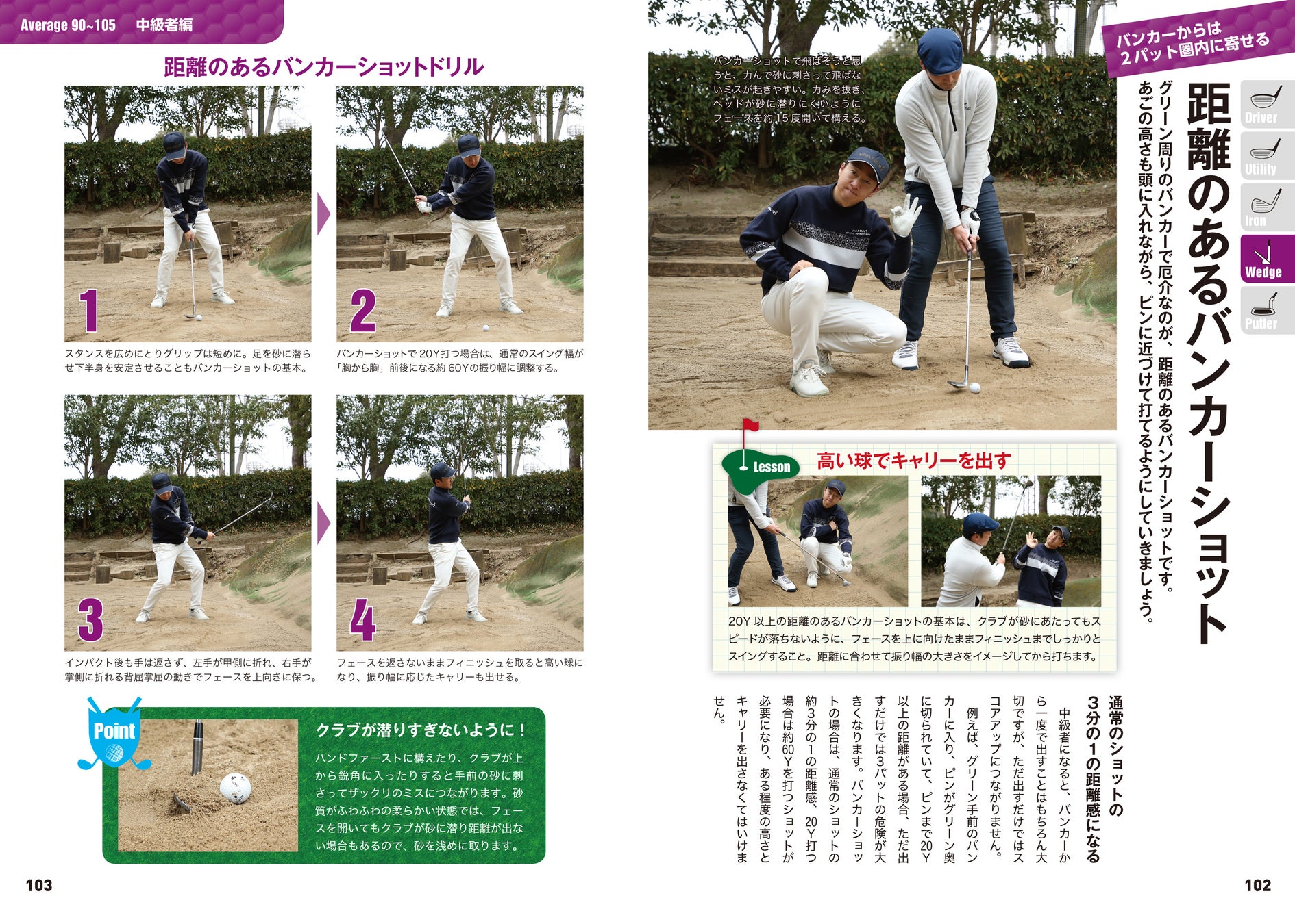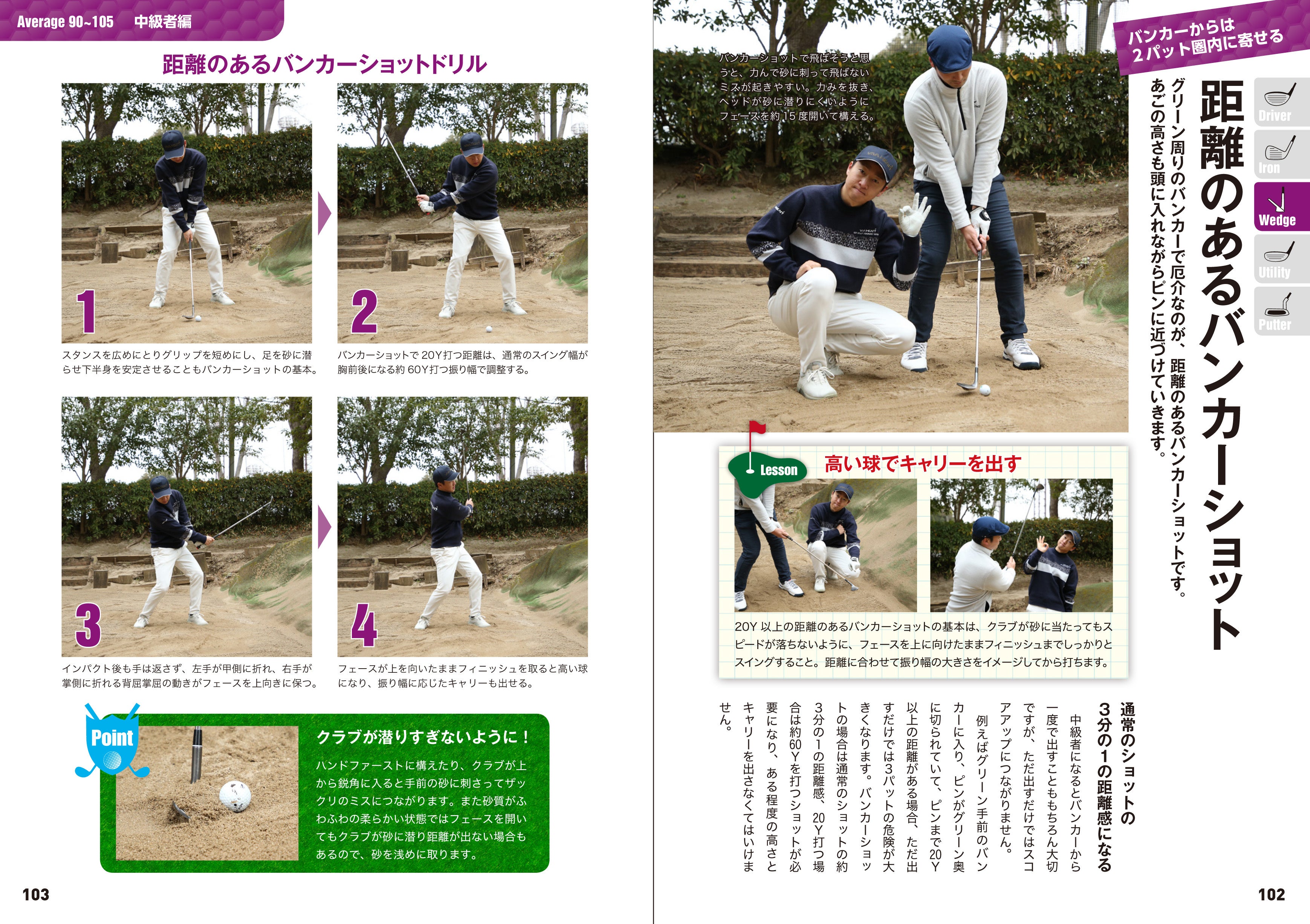 ゴルフデビューを考えている超初心者から、80切りを目指す上級者ゴルファーまで、「『ベストスコアを更新したい!』という方の願いを叶える」をコンセプトに、練習場で簡単にできる、ドライバー・アイアン・アプローチ・バンカー・パターのスキルアップのためのドリルを多数紹介しています。これらのドリルは、QRコードを読み込めば、動画でもその細かな動きを確認できます。