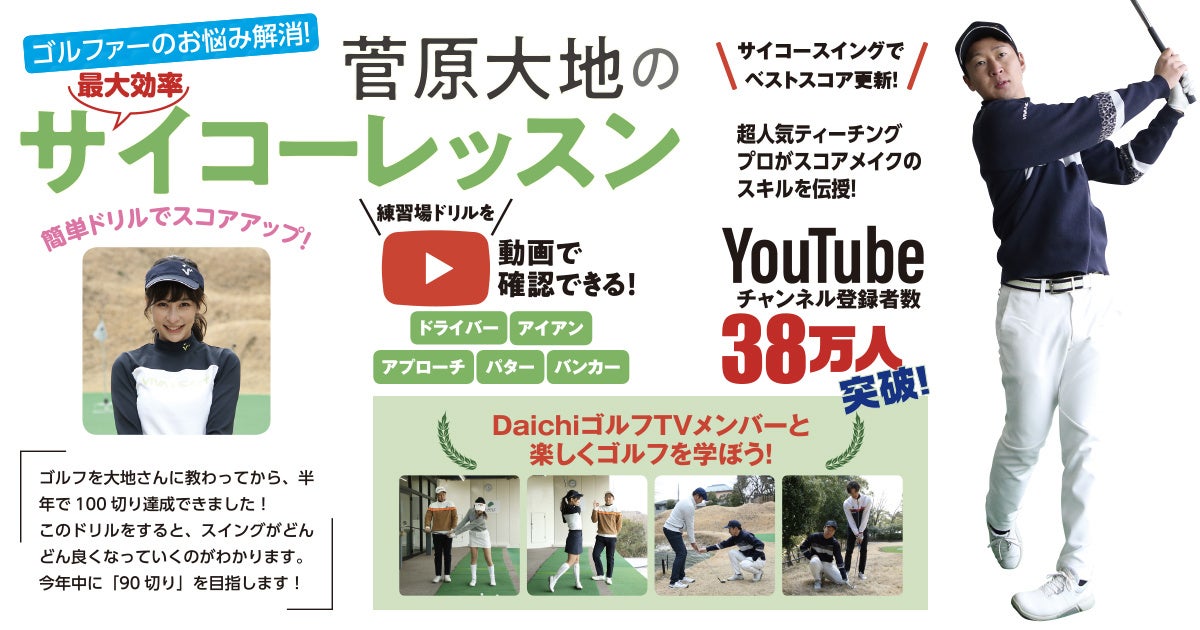 YouTube登録者数38万人「Daichi ゴルフTV」で話題!菅原大地プロが、ゴルフスコアアップのためのスイング、練習ドリルを解説した『ゴルファーのお悩み解消!菅原大地のサイコーレッスン』刊行!