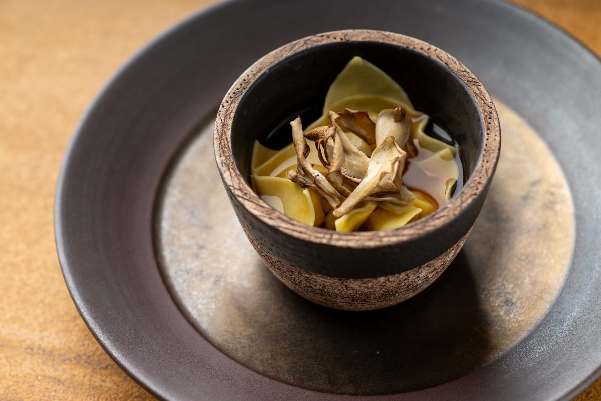 料 理 名︓福地鶏と九頭⻯まいたけの トルテリーニ・イン・ブロード
