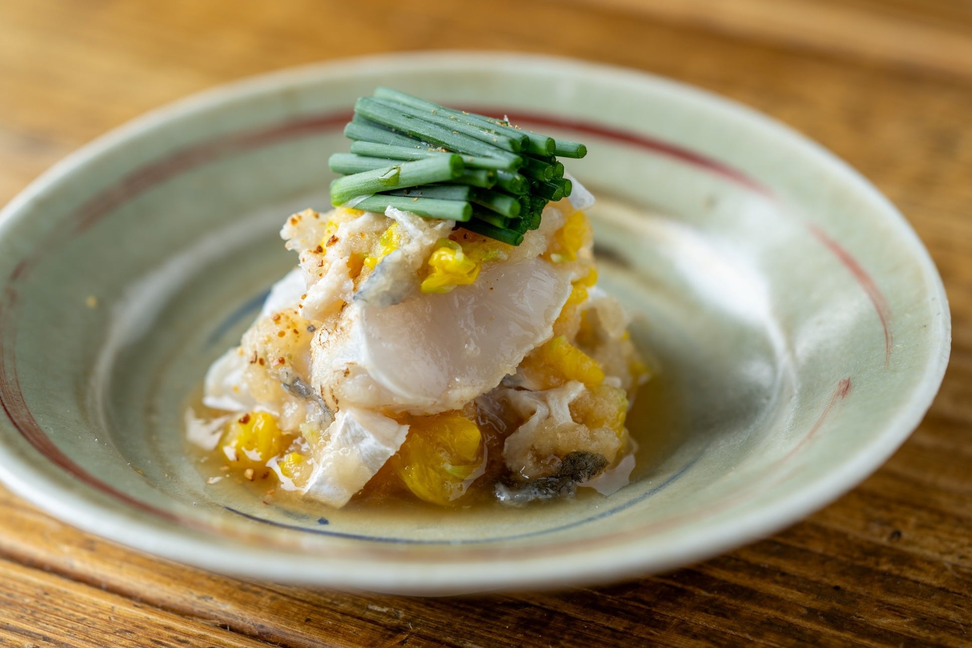 料 理 名︓炙りとらふぐと菊花のおろし和え