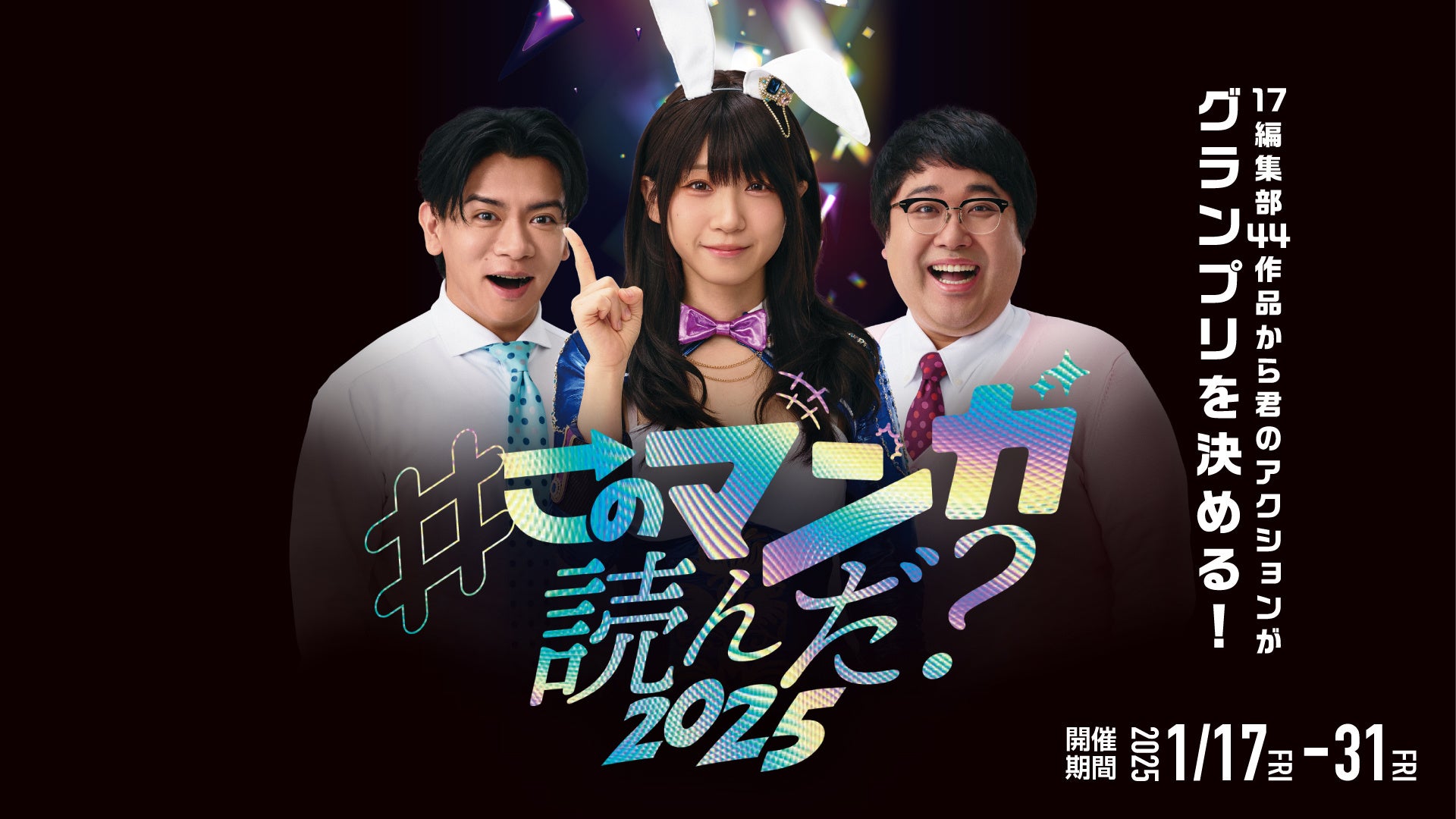 TikTok LIVE(初回)の総視聴者数が約6万人、「#このマンガ読んだ」がついたTikTokの総再生数が810万回と盛況のうちに幕を閉じた第一回。開催2回目となる「このマンガ読んだ?2025」では、総勢17編集部の垣根を超えて集まった、いま読んでほしい漫画44作品から、漫画紹介TikTokクリエイターのオススメ投稿の総視聴回数、そしてSHIBUYA TSUTAYA 6階IP書店に設置されるPOP-UPブースでの投票数を集計しグランプリを決定します。