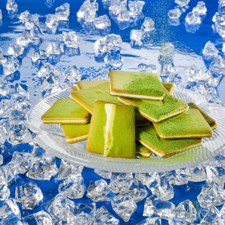 宇治抹茶とイタリア産ホワイトチョコレートを練り込んだガレット生地の中に宇治抹茶クリームを入れ焼き上げ、ホワイトチョコでコーティングしました。